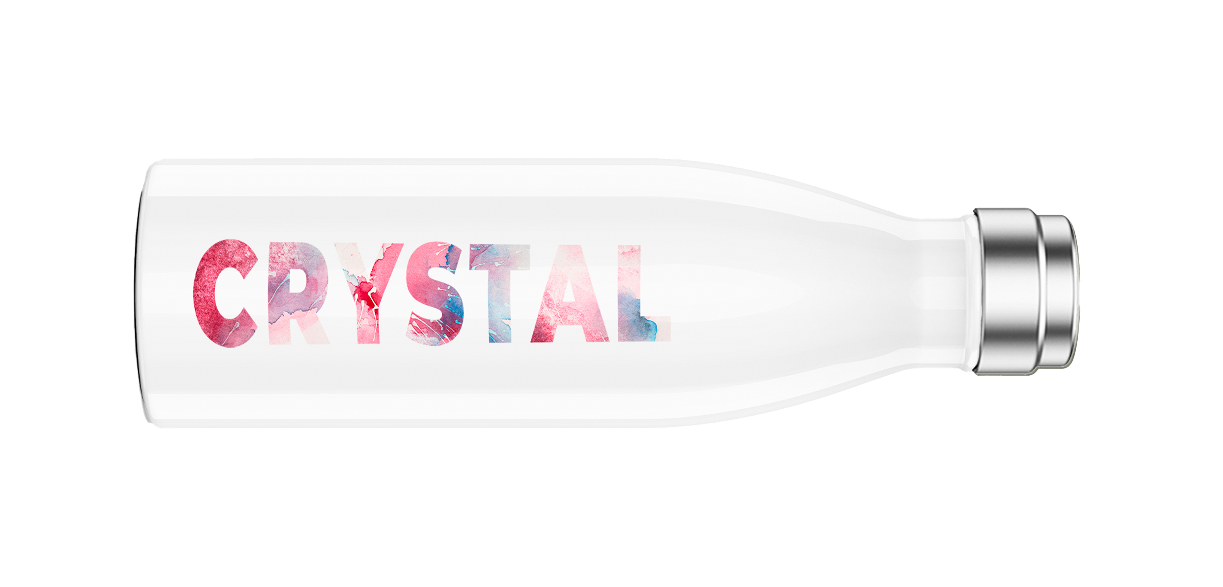Design Base colour: white. Design: full colour, with PURE logo on bottle. Cap: stainless steel with PURE BOTTLE logo.