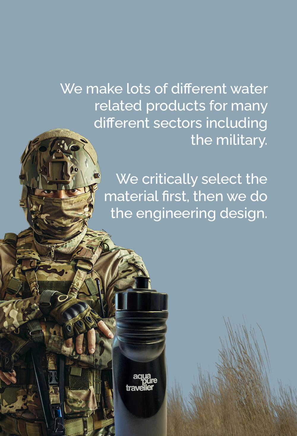PLEASE NOTE: The PURE Bottle should only be filled with safe drinking water or other beverages that are known to be free from potentially harmful microbiological and chemical contamination. For filtration of treated municipal drinking water please see our PURE Cap product. For purification of water from sources suspected of being unsafe for drinking, please consider use the of the aquapure traveller.